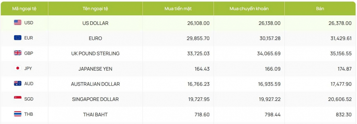 Còn ACB hiện giao dịch với 26.150 đồng/USD mua vào và 26.378 đồng/USD bán ra, giữ nguyên giá mua và giá bán đã hạ xuống thấp hơn phiên trước 3 đồng.