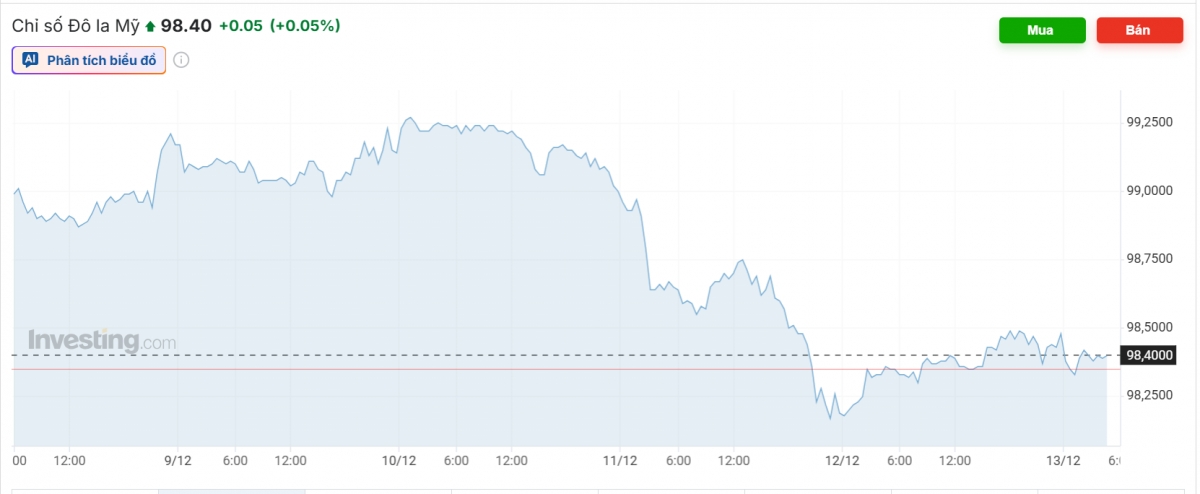 Chuyên gia phân tích thị trường tài chính Gertrude Chavez-Dreyfuss chia sẻ trên Reuters cho hay: "Chỉ số đô la, thước đo giá trị đồng tiền Mỹ so với sáu loại tiền tệ khác, tăng 0,1% lên 98,44 điểm, phục hồi từ mức thấp nhất trong hai tháng đạt được vào thứ Năm nhưng vẫn đang trên đà giảm tuần thứ ba liên tiếp với mức giảm 0,6%. Tính đến thời điểm hiện tại của tháng 12, đồng đô la Mỹ đã suy yếu 1,1%. Chỉ số này cũng giảm hơn 9% trong năm nay, hướng tới mức giảm hàng năm mạnh nhất kể từ năm 2017.
