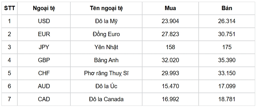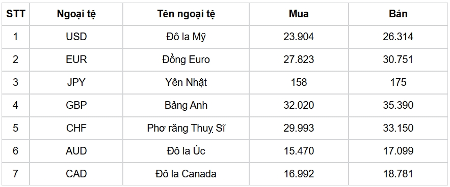 Tỷ giá các ngoại tệ mạnh khác trong giỏ thanh toán quốc tế, tại Ngân hàng Vietcombank được niêm yết như sau: