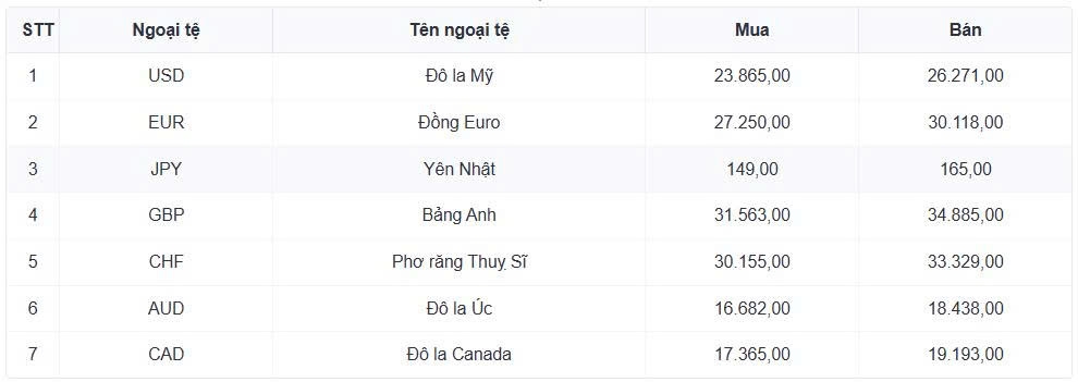 Tỷ giá các ngoại tệ mạnh khác trong giỏ thanh toán quốc tế, tại Ngân hàng Vietcombank được niêm yết như sau: