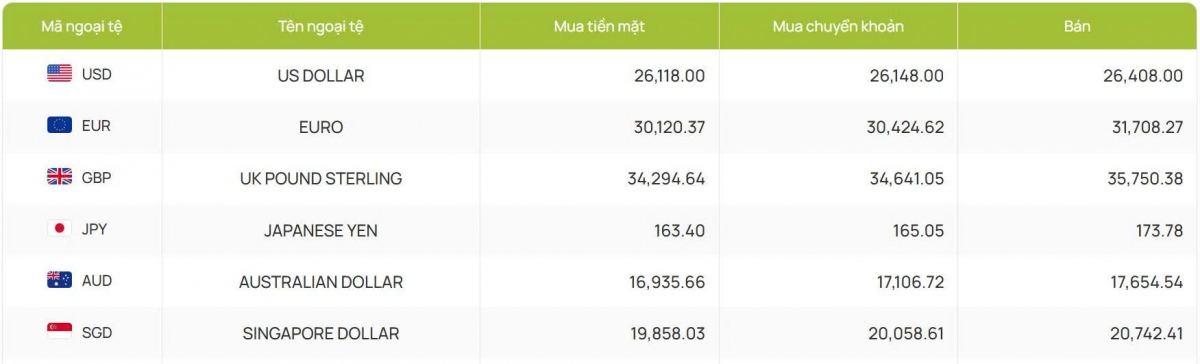 Cụ thể, ngân hàng Vietcombank sáng nay tăng 25 đồng chiều mua và 5 đồng chiều bán so với phiên trước, công bố giao dịch ở mốc 26.118 - 26.408 đồng/USD (mua vào và bán ra).