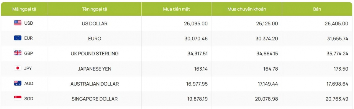 Còn ACB bắt đầu hôm nay với 26.120 đồng/USD mua vào và 26.405 đồng/USD bán ra, so với phiên trước giá bán đã giảm 3 đồng.