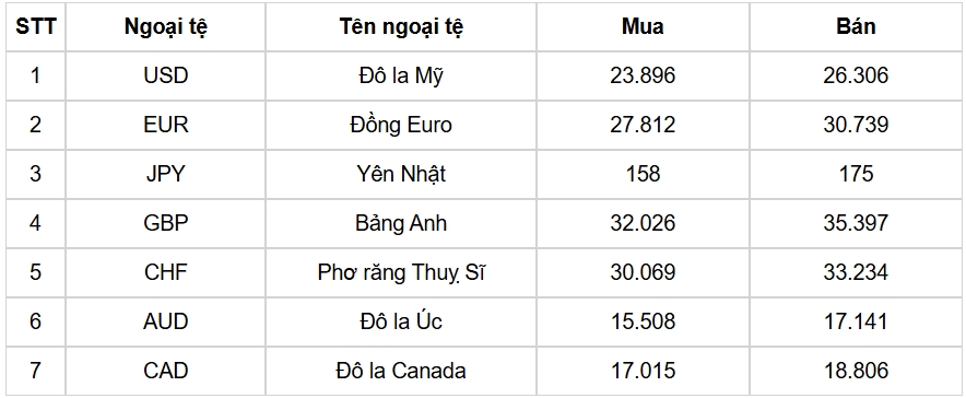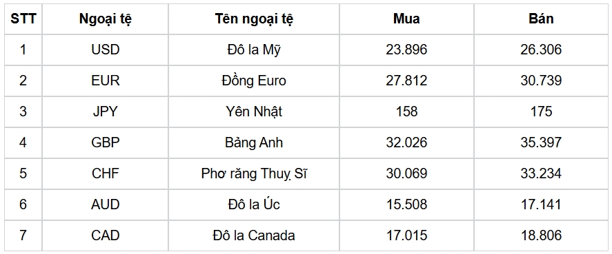 Tỷ giá các ngoại tệ mạnh khác trong giỏ thanh toán quốc tế, tại Ngân hàng Vietcombank được niêm yết như sau: