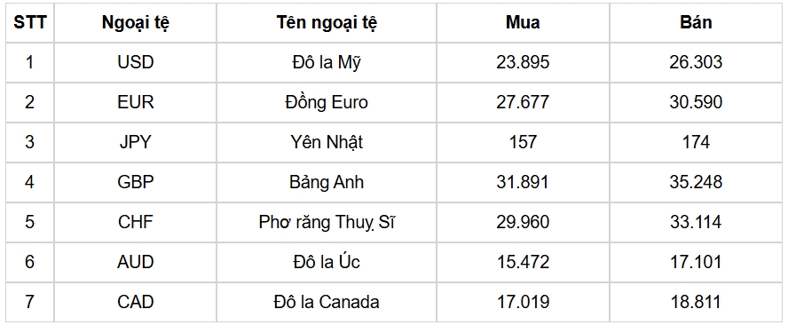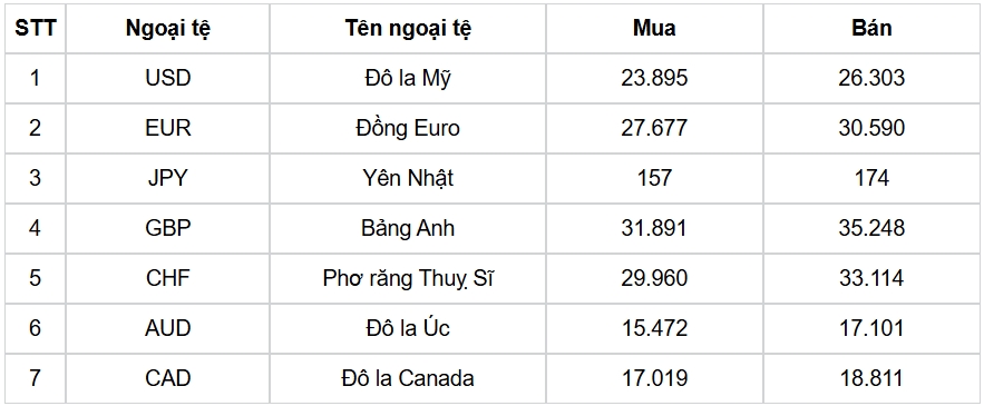 Tỷ giá các ngoại tệ mạnh khác trong giỏ thanh toán quốc tế, tại Ngân hàng Vietcombank được niêm yết như sau:
