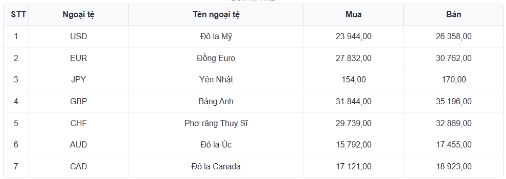 Tỷ giá các ngoại tệ mạnh khác trong giỏ thanh toán quốc tế, tại Ngân hàng Vietcombank được niêm yết như sau:
