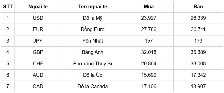 Tỷ giá các ngoại tệ mạnh khác trong giỏ thanh toán quốc tế, tại Ngân hàng Vietcombank được niêm yết như sau: