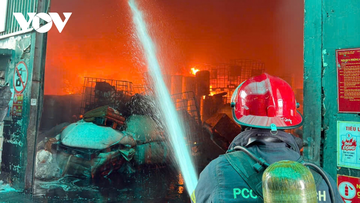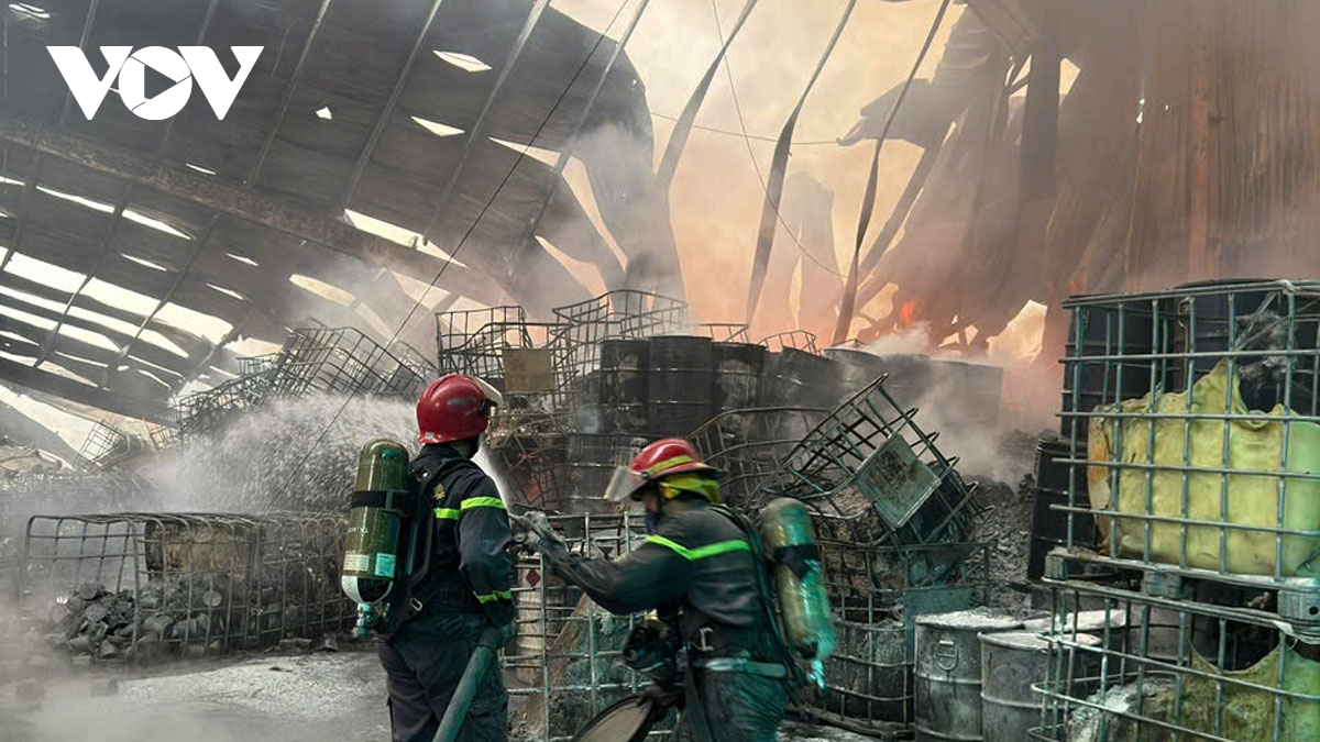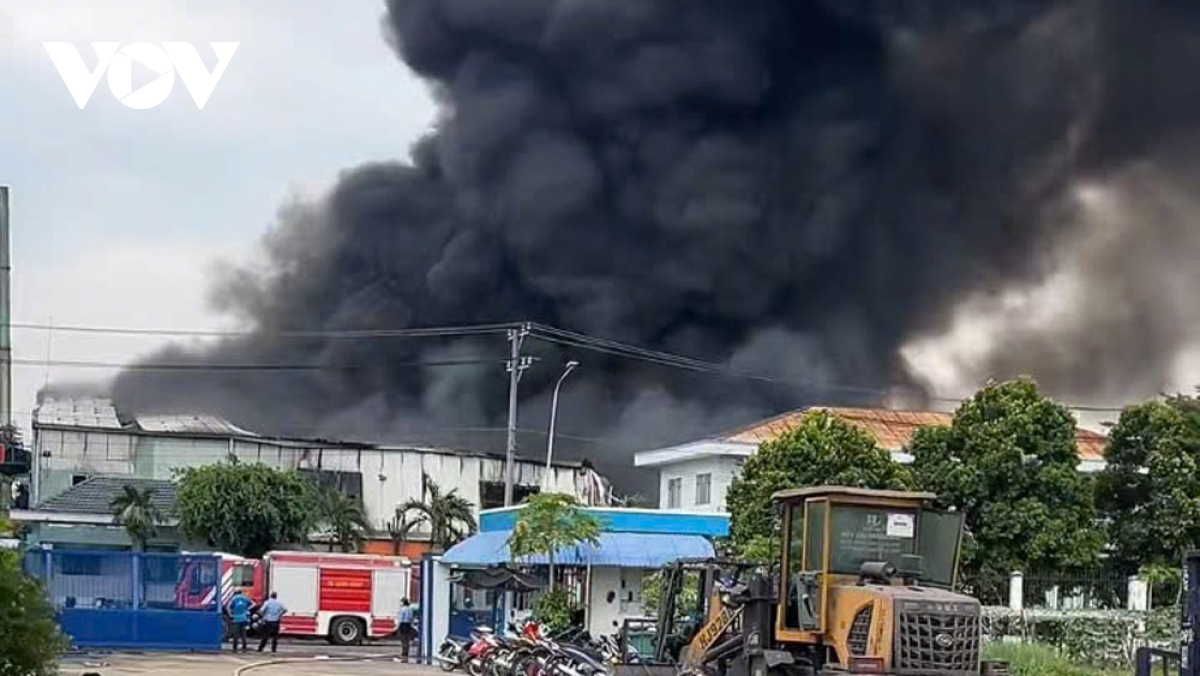 VOV.VN - Một vụ hỏa hoạn đã xảy ra tại Công ty TNHH SX – TM – DV Môi trường V.X vào chiều 15/8, thiêu rụi khoảng 1.500m² nhà xưởng. Lực lượng PCCC đã khống chế đám cháy, không để lan sang các khu vực lân cận.