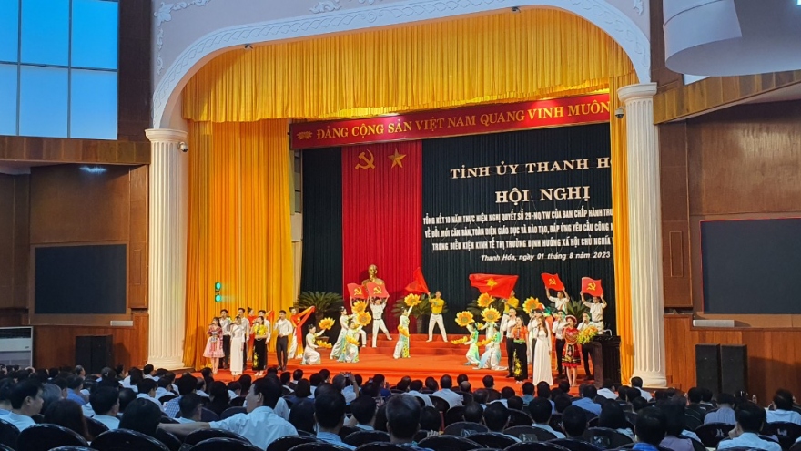 VOV.VN - Chiều 01/8, tỉnh Thanh Hóa tổ chức Hội nghị tổng kết 10 năm thực hiện Nghị quyết 29 của Ban chấp hành Trung ương Đảng về đổi mới căn bản, toàn diện giáo dục và đào tạo, đáp ứng yêu cầu công nghiệp hóa, hiện đại hóa trong điều kiện kinh tế thị trường định hướng xã hội chủ nghĩa và hội nhập quốc tế.