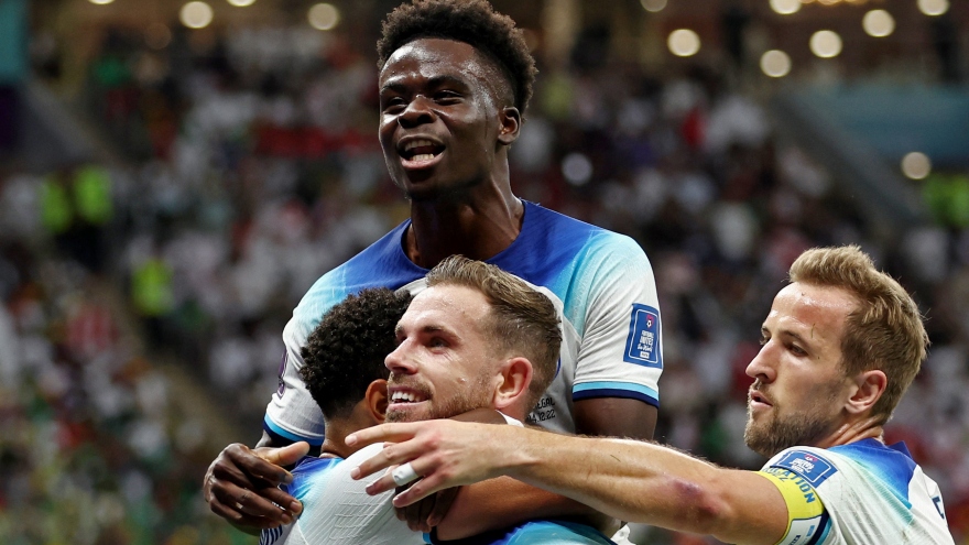 VOV.VN - Anh có thắng lợi dễ dàng với tỷ số 3-0 trước Senegal ở vòng 1/8 World Cup 2022 trên sân vận động Al Bayt tại Qatar để tiến vào tứ kết trong ngày Harry Kane có bàn thắng đầu tiên tại ngày hội bóng đá lớn nhất hành tinh.