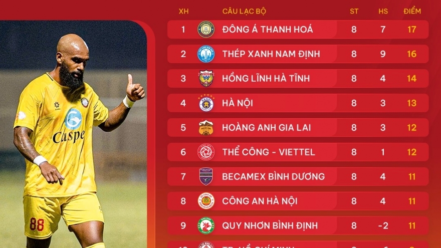 VOV.VN - Với cú đúp vào lưới Đà Nẵng ở vòng 8, Nguyễn Xuân Son đã có 4 bàn thắng tại V-League 2024/2025, leo lên đứng thứ 4 trong cuộc đua “Vua phá lưới” sân chơi cao nhất Việt Nam.