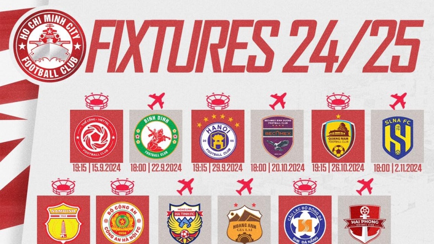 VOV.VN - Lịch thi đấu V-League 2024/2025 của CLB TP.HCM ở 9 vòng đấu đầu tiên theo thông báo từ phía Ban tổ chức. Những vòng đấu tiếp theo sẽ được công bố giờ thi đấu cụ thể căn cứ vào tình hình cụ thể.