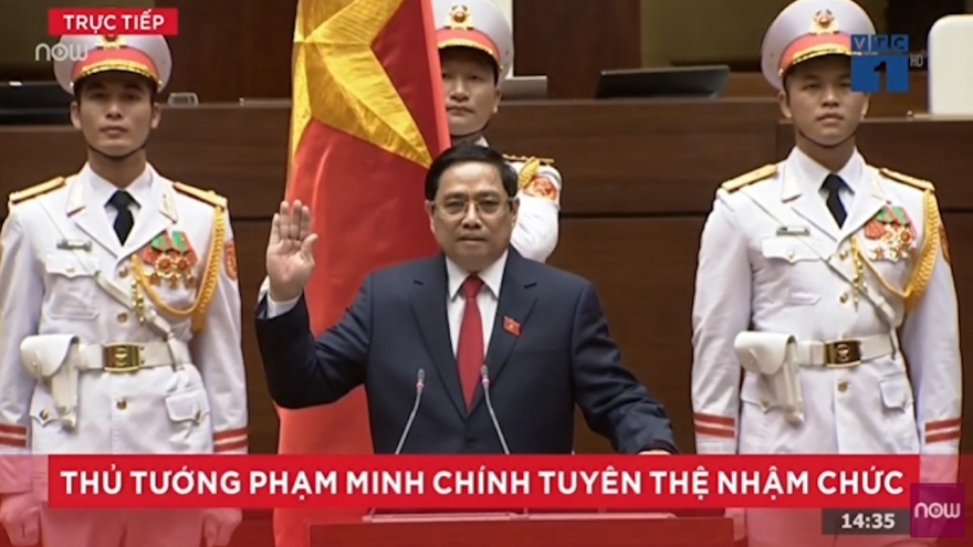 VOV.VN - Sau khi được bầu giữ chức vụ Thủ tướng Chính phủ nhiệm kỳ mới, ông Phạm Minh Chính thực hiện nghi lễ tuyên thệ và phát biểu nhậm chức trước Quốc hội.
