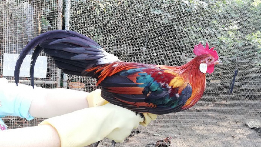 VOV.VN - Gà rừng tai trắng quý hiếm có màu lông sặc sỡ, cựa nhọn, dáng thon, thần thái tinh nhanh và có đôi tai màu trắng khiến nhiều người đã chi cả triệu đồng để tìm mua về làm cảnh.