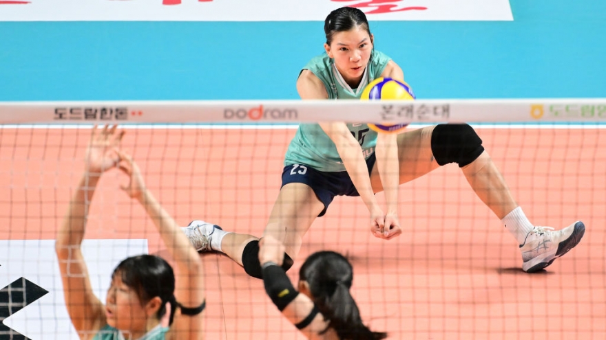 VOV.VN - Kết quả bóng chuyền nữ Hàn Quốc, Bích Thủy không ghi được điểm nào trong trận GS Caltex Seoul Kixx thua 0-3 trước Daejeon Red Sparks, đội bóng có VĐV Megawati Hangestri đến từ Indonesia.