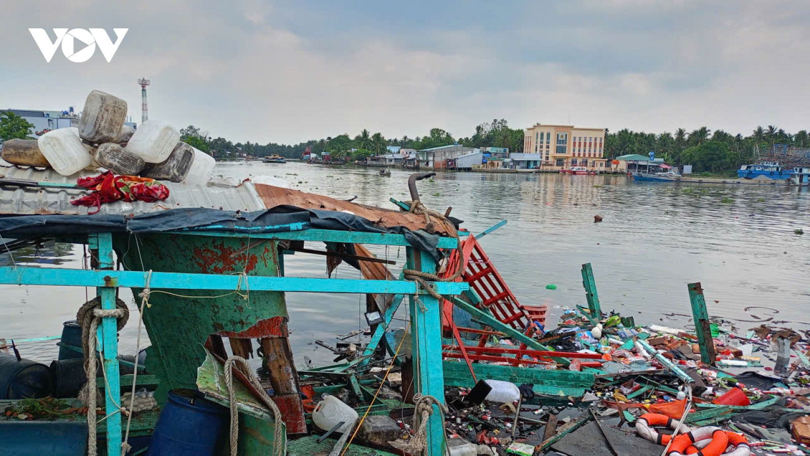 VOV.VN - Trưa 26/4, tại khu vực Bến phà Tắc Cậu ở ấp An Bình, xã Bình An, tỉnh An Giang đã xảy ra vụ cháy, nổ tàu cá trong lúc lên xuống hàng, làm 7 người bị thương, trong đó có 1 người nguy kịch.