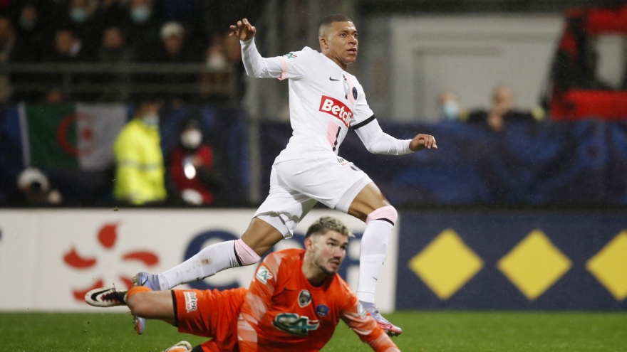 VOV.VN - Cú hat-trick của Mbappe và pha làm bàn của Kimpembe giúp PSG khởi đầu năm 2022 bằng chiến thắng 4-0 trước Vannes tại vòng 32 đội Cúp Quốc gia Pháp.