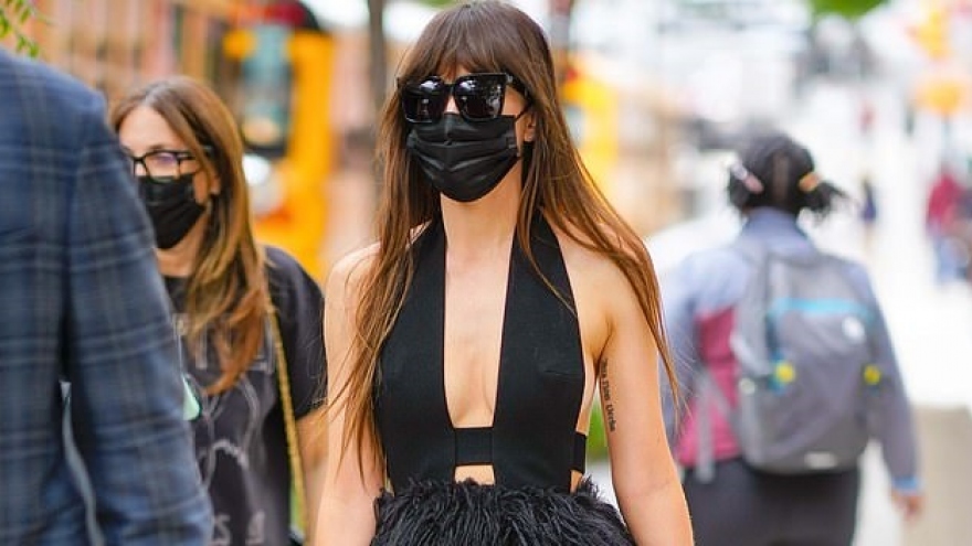 VOV.VN - Nữ diễn viên Dakota Johnson đeo khẩu trang cẩn thận, diện blazer thanh lịch ra phố ở New York sau ồn ào đính hôn với Chris Martin cách đây không lâu.