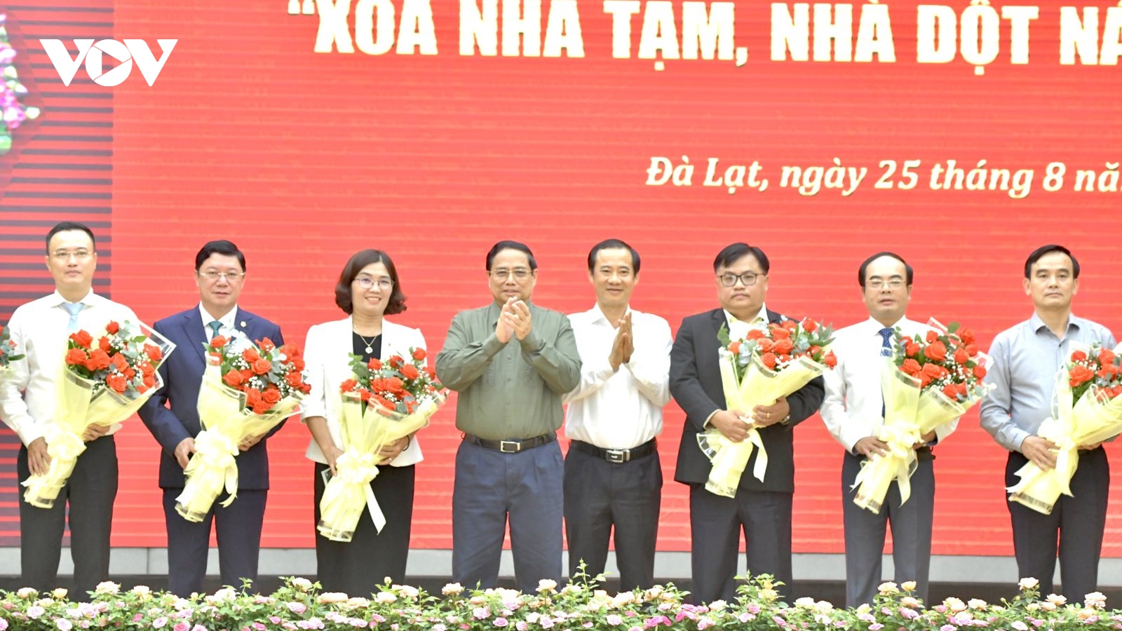 VOV.VN - Chiều 25/8, tại thành phố Đà Lạt, trong chương trình công tác tại tỉnh Lâm Đồng Thủ tướng Phạm Minh Chính - Chủ tịch Hội đồng Thi đua - Khen thưởng Trung ương dự lễ tiếp nhận ủng hộ Chương trình “Xoá nhà tạm, nhà dột nát” tỉnh Lâm Đồng. Cùng dự có lãnh đạo các bộ, ngành, cơ quan Trung ương; đại diện các doanh nghiệp, nhà tài trợ.