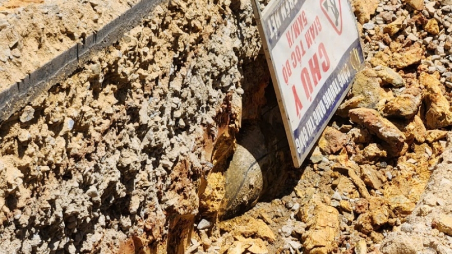 VOV.VN - Ngày 14/3, trong lúc đào đường để mở rộng nút giao thông, đơn vị thi công đã phát hiện một quả bom lớn nằm dưới lòng đất giữa con đường dẫn lên sân vận động thuộc địa bàn phường 7, thành phố Đà Lạt, tỉnh Lâm Đồng.