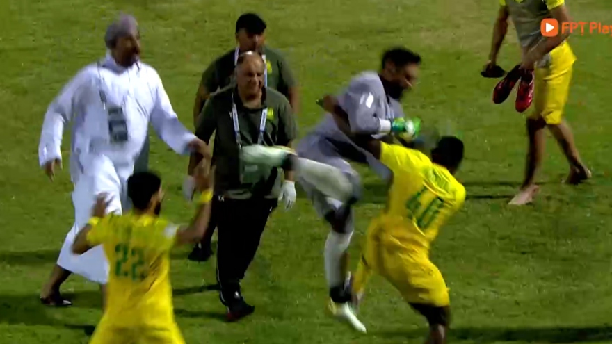 VOV.VN - Thủ môn Sulaiman Abdulghafoor của CLB Al Arabi (Kuwait) đã để lại hình ảnh không đẹp khi ''tung cước'' đá vào người đối thủ sau khi đội bóng của anh thất bại trước Al Seeb (Oman).