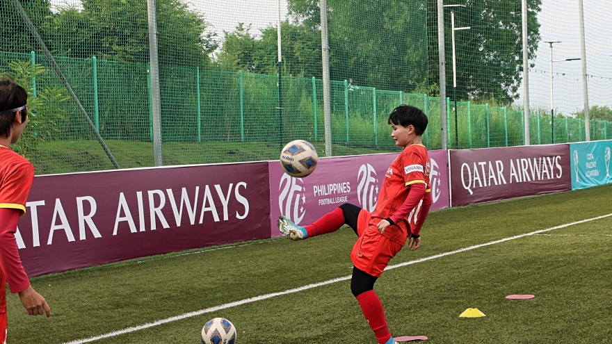 VOV.VN - ĐT nữ Việt Nam tích cực tập luyện hướng đến trận đấu với ĐT nữ Lào sau khi đã có chiến thắng 3-0 trước Campuchia trong ngày ra quân ở giải AFF Cup nữ 2022.