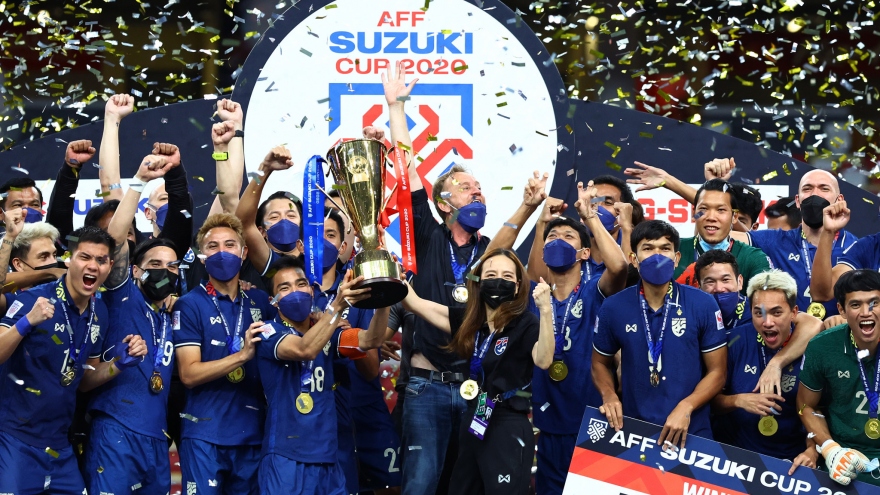 VOV.VN - ĐT Thái Lan thắng thuyết phục ĐT Indonesia để vô địch AFF Cup 2020, đây là chức vô địch thứ 6 của “Voi chiến” và số chức vô địch của đội bóng này đã bằng thành tích hai đội tuyển Singapore và Việt Nam cộng lại ở giải đấu khu vực.