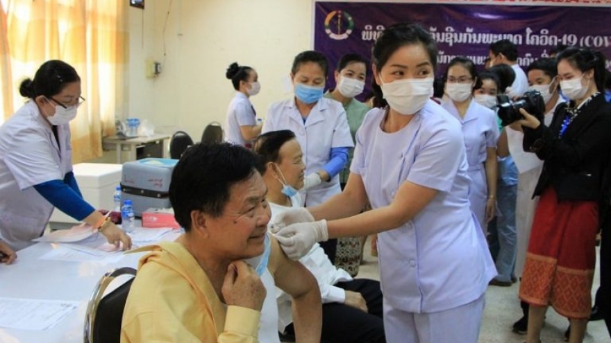 VOV.VN - Hơn 600 người là lãnh đạo và nhân viên y tế tuyến đầu của Lào vừa được tiêm vaccine ngừa Covid-19 với sự chứng kiến của Phó Thủ tướng Lào Somdy Duangdy và Bộ trưởng Y tế Lào Bounkong Sihavong.