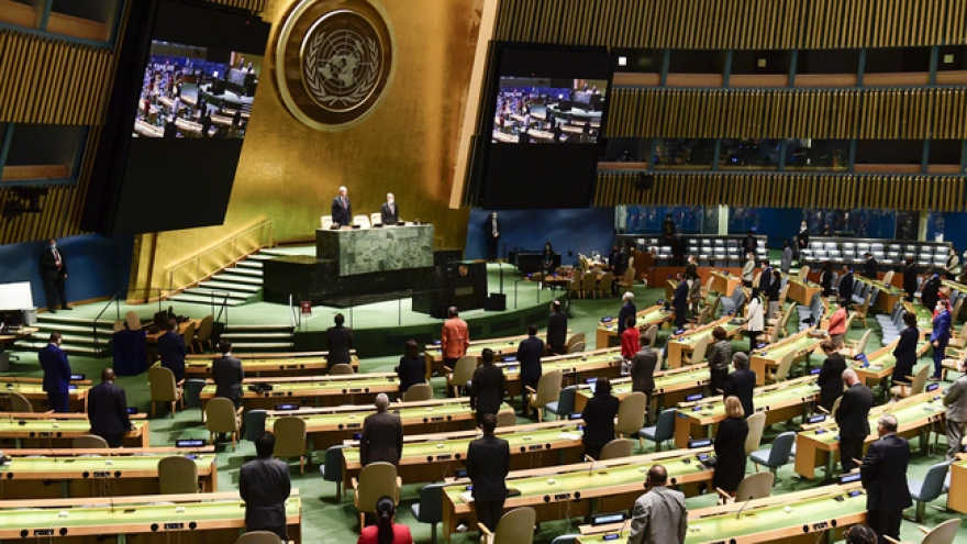 VOV.VN - Tuần lễ cấp cao khóa 75 Đại hội đồng Liên Hợp Quốc đã khai mạc ngày 21/9 tại trụ sở LHQ ở New York. Hoạt động đầu tiên của sự kiện này là lễ kỷ niệm 75 năm thành lập Liên Hợp Quốc.