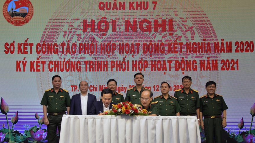 VOV.VN - Sáng 23/12, Quân khu 7 tổ chức Hội nghị sơ kết công tác phối hợp hoạt động kết nghĩa năm 2020; ký kết chương trình phối hợp hoạt động năm 2021.