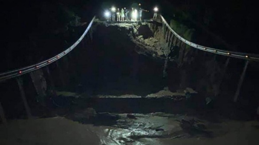 Do ảnh hưởng của mưa lớn kéo dài, đoạn đường dài 50m tại Km53+400 QL26 (đoạn qua đèo M’Đrắk, huyện M’Đrăk , tỉnh Đắk lắk) đã sụt lún một đoạn sâu 10m, rộng 12m.