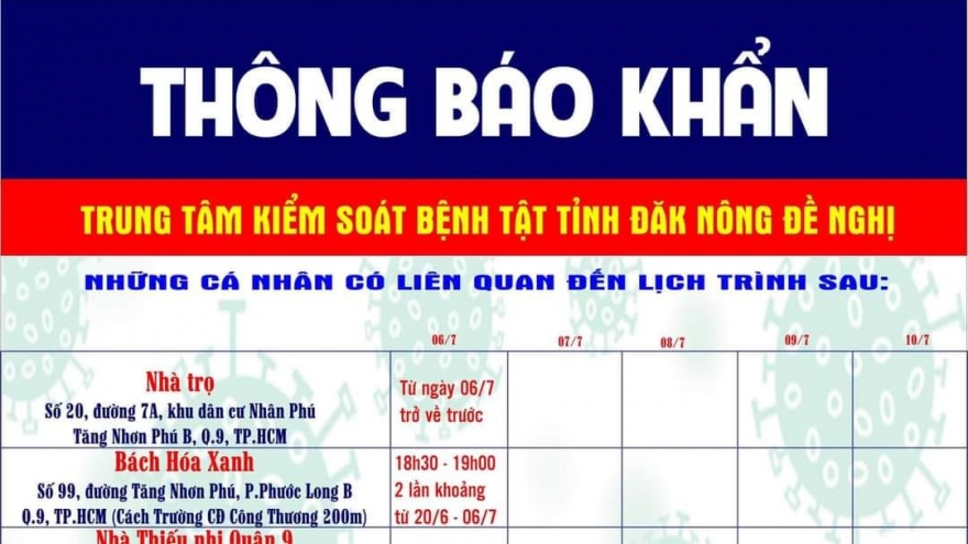 VOV.VN - Sáng 11/7, tỉnh Đắk Nông cho biết bệnh nhân 28474 là chị T.T.M.H 22 tuổi, thường trú ở xã Đắk Sôr, huyện Krông Nô, tỉnh Đắk Nông, nhân viên công ty dịch vụ du lịch tại TP.HCM.