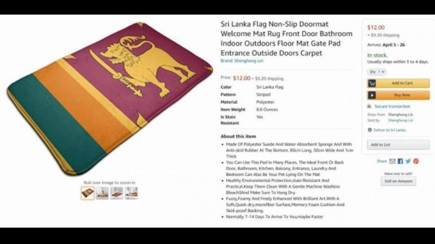 VOV.VN - Trang thương mại điện tử Amazon vừa phải gỡ bỏ 1 quảng cáo về sản phẩm thảm chùi chân mang hình lá quốc kỳ của Sri Lanka, theo yêu cầu của cơ quan ngoại giao nước này.