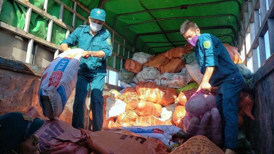 VOV.VN - Trong ngày 9/3, đội tuần tra kiểm soát giao thông đường bộ cao tốc số 2 (Cục CSGT) liên tiếp phát hiện 2 xe tải chở theo số lượng lớn nầm lợn đông lạnh đang bốc mùi hôi thối, không rõ nguồn gốc xuất xứ đi tiêu thụ.