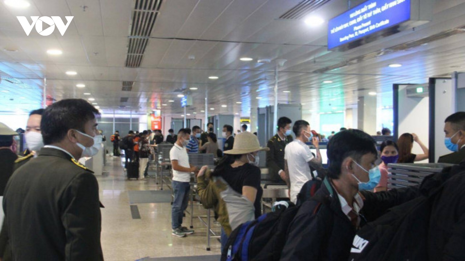 VOV.VN - Tình trạng hành khách người thân đưa, đón không đeo khẩu trang tại khu vực cách ly của sân bay làm tăng nguy cơ lây nhiễm dịch bệnh COVID-19 qua đường hàng không.