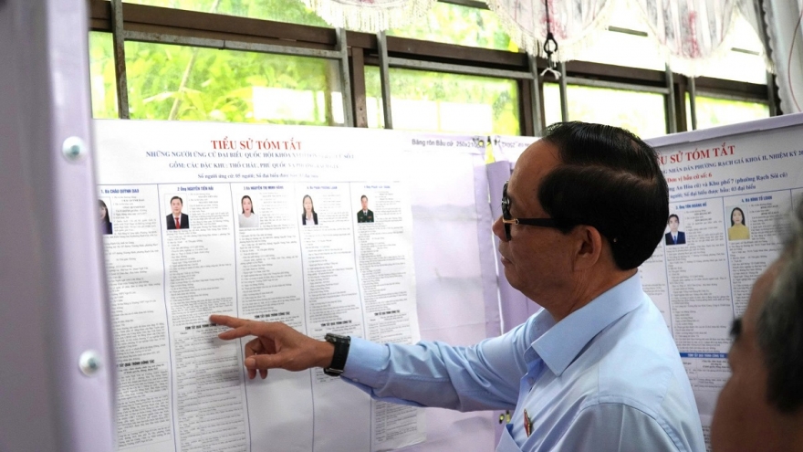 VOV.VN - Chiều 6/3, Đoàn kiểm tra của Tiểu ban Bảo đảm an ninh, trật tự, an toàn xã hội thuộc Hội đồng Bầu cử quốc gia do Phó Chủ tịch Quốc hội, Thượng tướng Trần Quang Phương làm Trưởng đoàn kiểm tra công tác bảo đảm an ninh bầu cử tại khu vực bỏ phiếu khu phố 3, Tổ bầu cử số 68, Rạch Giá và Phòng Cảnh sát PCCC.