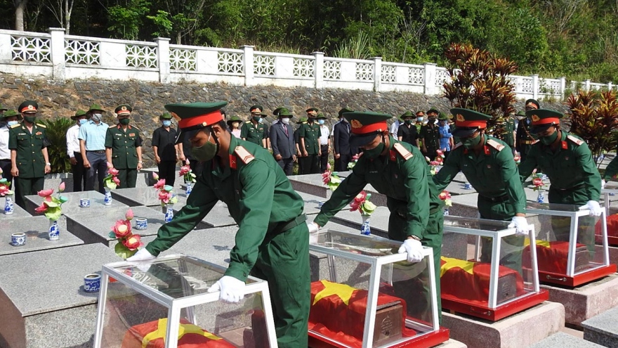 VOV.VN - Hôm nay (11/6), tại Nghĩa trang Liệt sĩ Quốc gia Đường 9, thành phố Đông Hà, Đảng bộ, chính quyền và nhân dân tỉnh Quảng Trị tổ chức trọng thể Lễ truy điệu và an táng 40 hài cốt liệt sĩ.