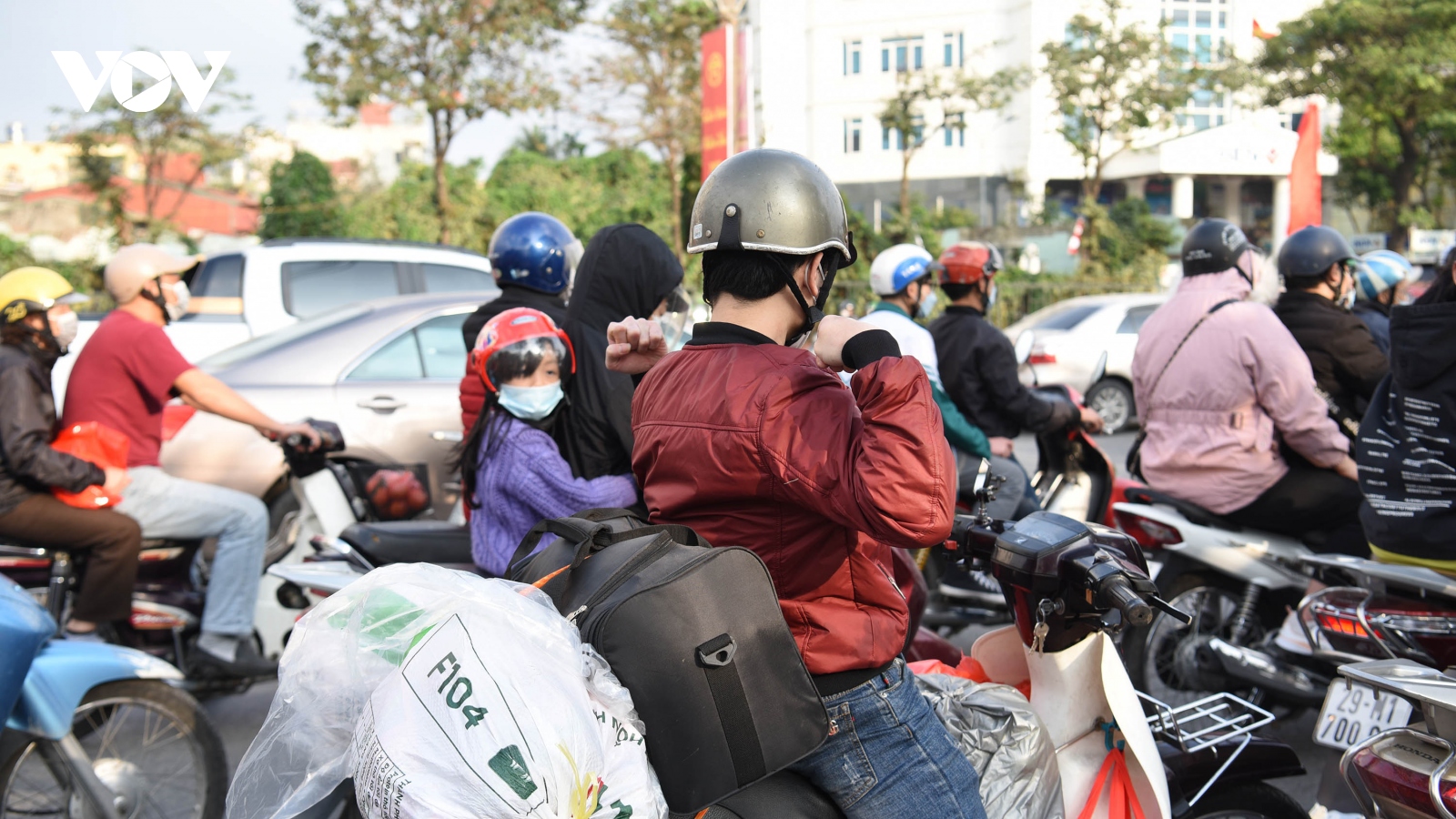 VOV.VN - Chiều 28/1, tức 26 Tết Nhâm Dần 2002 là ngày làm việc cuối cùng. Người lao động bắt đầu hành trình về quê ăn Tết, mật độ phương tiện chủ yếu là xe máy gia tăng tại cửa ngõ phía Nam Thủ đô.