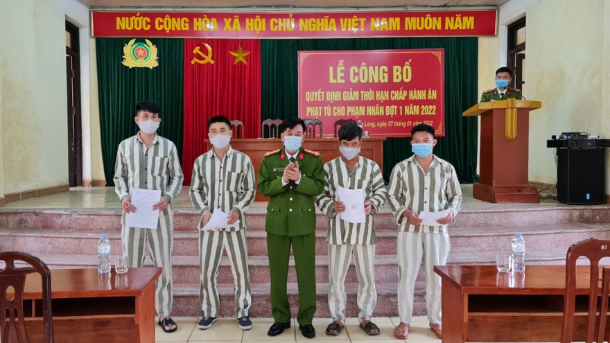 VOV.VN - Các phạm nhân được giảm thời hạn chấp hành án phạt tù trong đợt này đều có quá trình cải tạo tốt, chấp hành nghiêm kỷ luật, nội quy, quy định trong thời gian chấp hành án; khắc phục bồi thường thiệt hại và được xếp loại thi đua đạt loại khá trở lên.