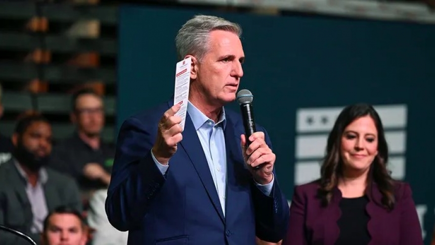 VOV.VN - Lãnh đạo phe thiểu số tại Hạ viện Kevin McCarthy đã tuyên bố chiến thắng ngày 8/11 (giờ Mỹ) khi nói rằng đảng Cộng hòa đã đảm bảo đủ số ghế để giành quyền kiểm soát Hạ viện.