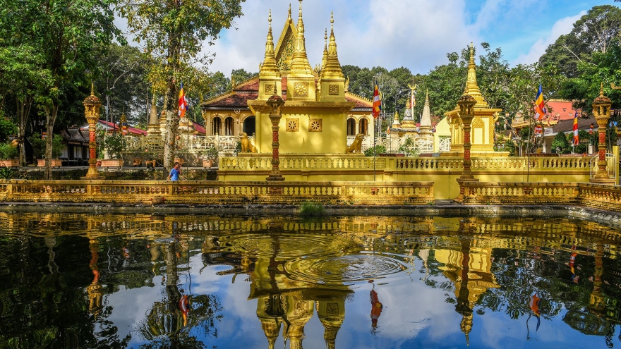 Được xây dựng từ năm 990, qua nhiều lần trùng tu, tôn tạo, chùa Âng ở TP. Trà Vinh (tỉnh Trà Vinh) vẫn giữ được lối kiến trúc cổ truyền độc đáo của đồng bào Khmer Nam Bộ.