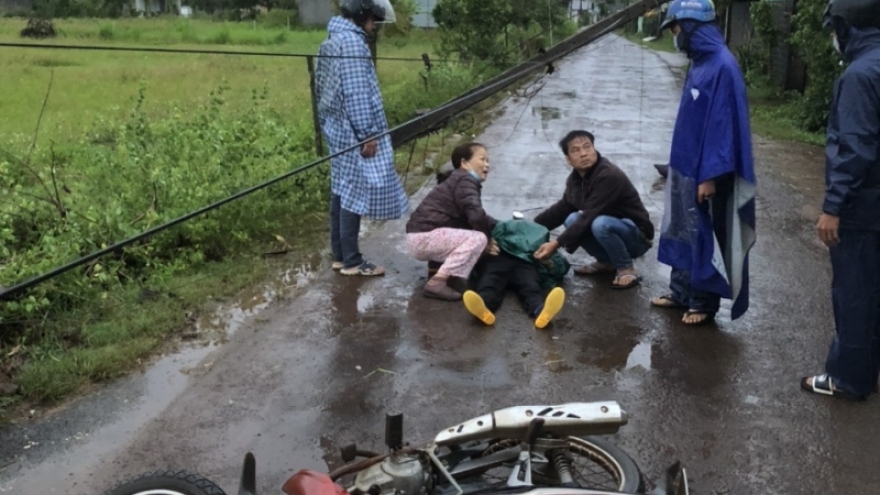 VOV.VN - Rạng sáng nay, 28/9, trên đường đi làm, một phụ nữ ở xã An Phú, TP.Pleiku, tỉnh Gia Lai đã tử vong khi tông xe máy vào cột điện đổ ngang đường do ảnh hưởng của Bão số 4.