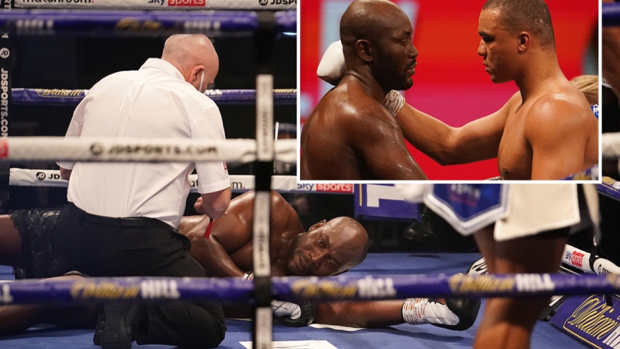 VOV.VN - Võ sĩ quyền Anh người Ghana Richard Lartey đã phải nhờ đến sự trợ giúp của bình thở oxy sau khi bị Fabio Wardley hạ knock-out ở hiệp đấu thứ 2