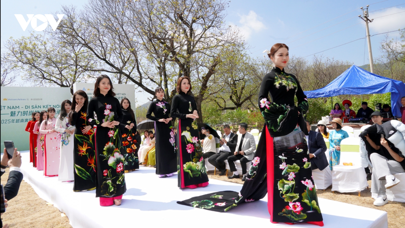 VOV.VN - Trong không khí kỷ niệm 75 năm thiết lập quan hệ ngoại giao Việt Nam – Trung Quốc và “Năm giao lưu nhân văn Việt – Trung”, hôm nay (19/4), đại diện cộng đồng người Việt ở Trung Quốc đã tổ chức chương trình biểu diễn “Áo dài Việt Nam – Di sản kết nối” tại Thủ đô Bắc Kinh.