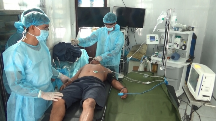 VOV.VN - Đảo Song Tử Tây, huyện đảo Trường Sa, tỉnh Khánh Hòa vừa cấp cứu thành công một ngư dân tỉnh Bình Định bị tai nạn lao động, dập nát bàn tay khi đi đánh bắt trên ngư trường Trường Sa.