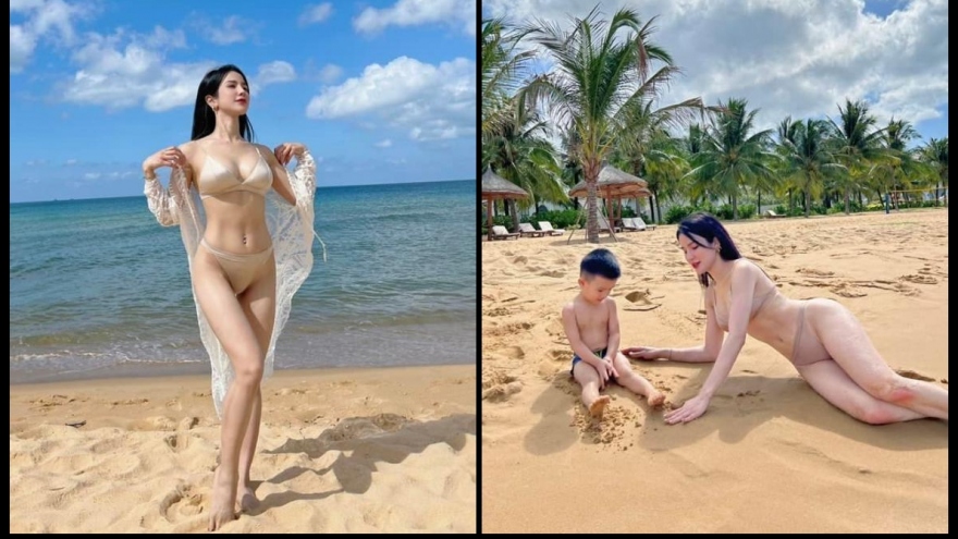 VOV.VN - Diệp Lâm Anh cùng gia đình và các con đang có một kì nghỉ vui vẻ ở biển. Trong suốt chuyến đi này, Diệp Lâm Anh thường xuyên khoe những hình ảnh gợi cảm trong trang phục bikini khiến mọi người phải trầm trồ khen ngợi.