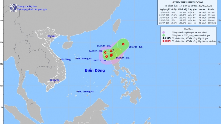 VOV.VN - Hồi 7 giờ ngày 23/12, vị trí tâm áp thấp nhiệt đới ở vào khoảng 11,0 độ Vĩ Bắc; 112,8 độ Kinh Đông, trên khu vực phía Tây Bắc quần đảo Trường Sa. Sức gió mạnh nhất vùng gần tâm áp thấp nhiệt đới mạnh cấp 7 (50-61km/h), giật cấp 9; di chuyển theo hướng Tây Tây Bắc, tốc độ 10km/h.