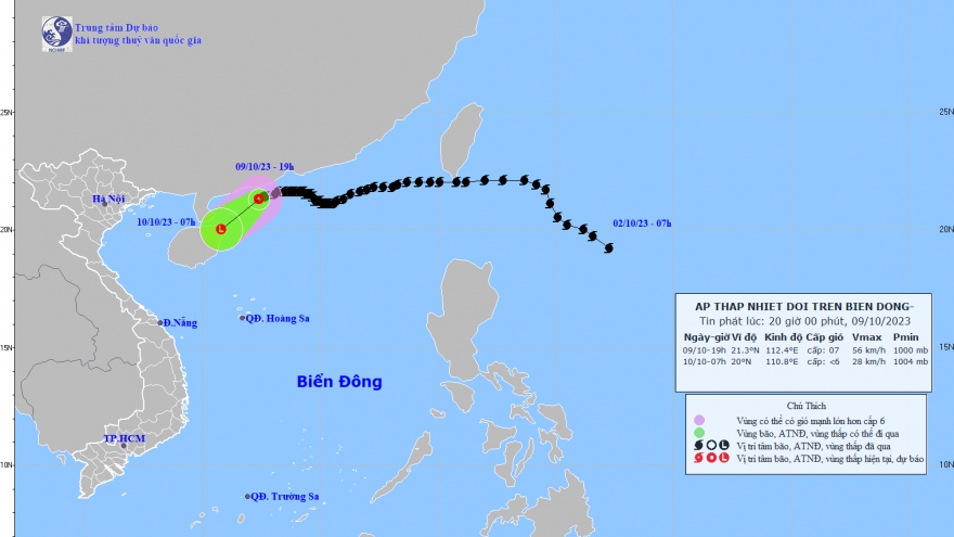 VOV.VN - Theo Trung tâm dự báo khí tượng thủy văn Quốc gia áp thấp nhiệt đới đã suy yếu thành một vùng áp thấp trên khu vực đảo Hải Nam (Trung Quốc)