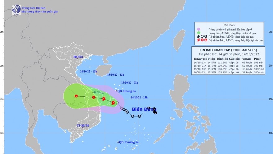 VOV.VN - Theo Trung tâm dự báo khí tượng thủy văn quốc gia, trưa nay (14/10), áp thấp nhiệt đới đã mạnh lên thành bão, cơn bão số 5, có tên quốc tế là SONCA.