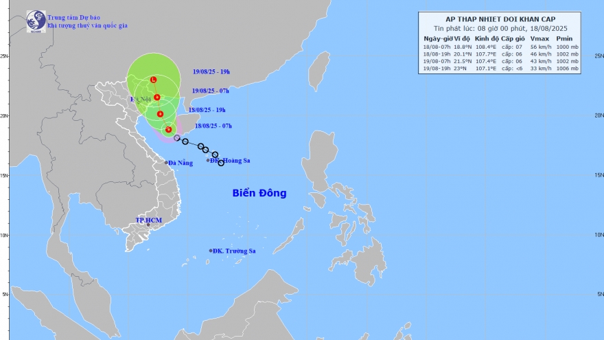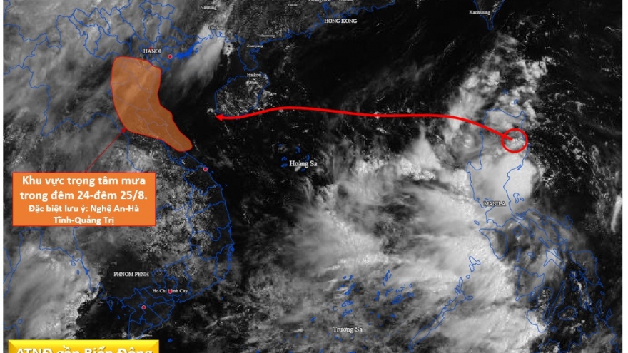 Bão số 5 sắp hình thành cường độ cực đại có thể đạt cấp 11-12, giật cấp 14-15, di chuyển nhanh. Từ đêm 24 đến hết 27/8, mưa lớn từ Thanh Hóa đến Huế, trọng tâm Nghệ An - Quảng Trị.