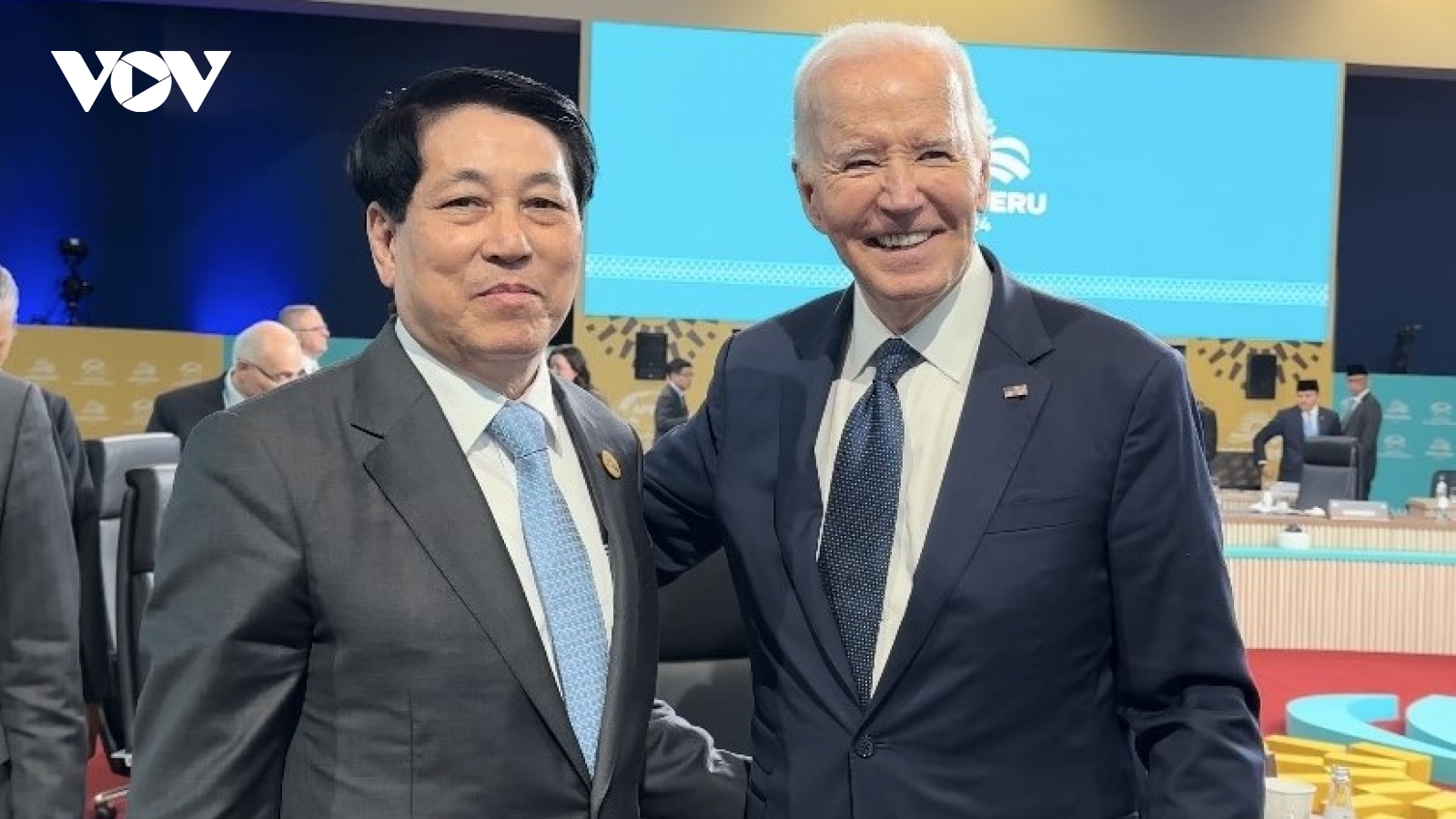VOV.VN - Ngày 16/11 (giờ địa phương), nhân dịp dự Tuần lễ cấp cao Diễn đàn Hợp tác kinh tế châu Á - Thái Bình Dương (APEC) 2024 tại Lima (Peru), Chủ tịch nước Lương Cường đã hội kiến Tổng thống Hàn Quốc Yoon Suk Yeol.